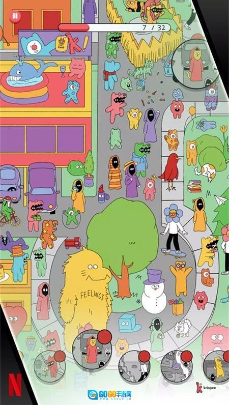 脆比街游戏安卓最新版是Netflix推出的一款休闲寻物游戏,改编自热门网络漫画,玩家需要在复杂的街区地图里找出数百个分散各处的人物与物品。(Krispee Street)脆比街游戏免费版采用手绘风格画面,色彩鲜艳,关卡数量丰富,每个关卡都有对应的寻找目标,要找出隐藏在人群中的脆比;数千个手绘角色与数百件生活化物件交织成复杂画面,视觉层次十分丰富。此外,不同场景搭配专属原创配乐和音效,高保真音质能让玩家沉浸在探索的节奏里。