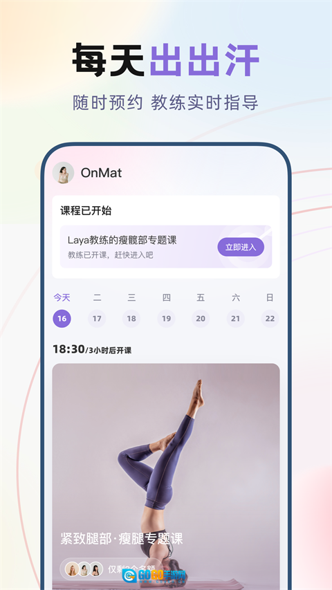 打开昂迈特后,先进行身体评估测试,系统会依据你的柔韧性与基础情况,为你推荐合适的入门课程,你只需跟着视频逐步练习即可。