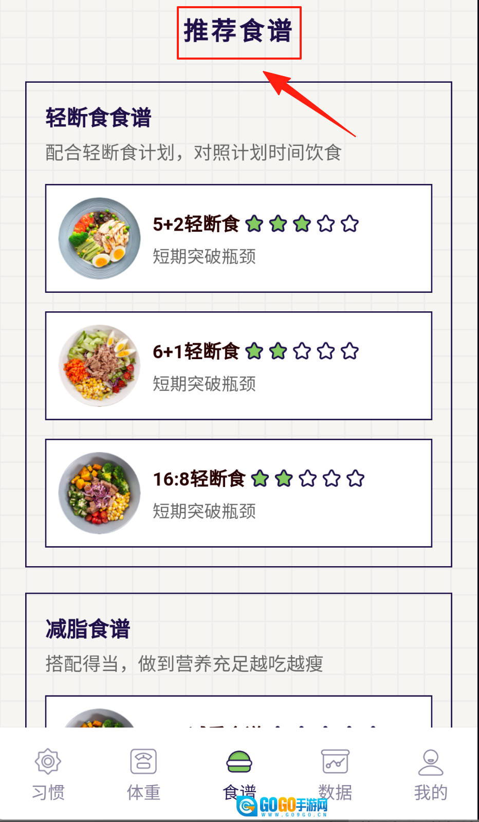 好习惯打卡功能支持查看食谱,软件还为用户提供了多样化的功能选项。