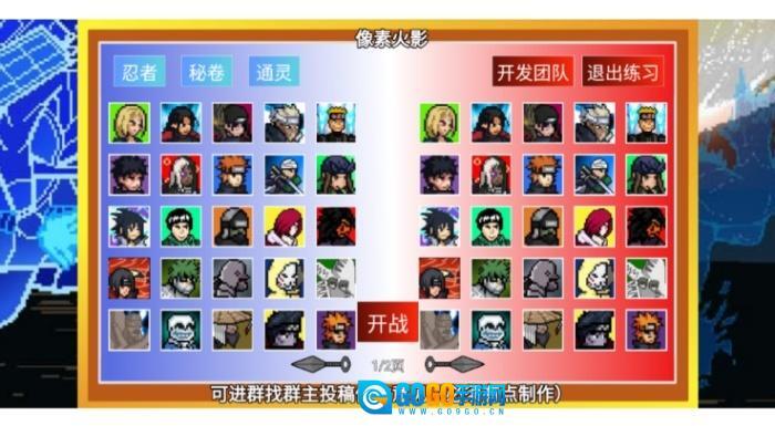 采用复古风格设计,界面简洁明了,以2D像素格斗形式呈现,还原了火影忍者的经典场景与人物形象。