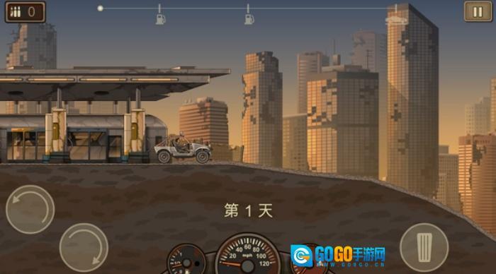 游戏采用按钮操控。在行驶途中,我们能够控制车辆完成各类特技动作,这并非为了炫耀,而是为了摆脱身后追赶的僵尸。