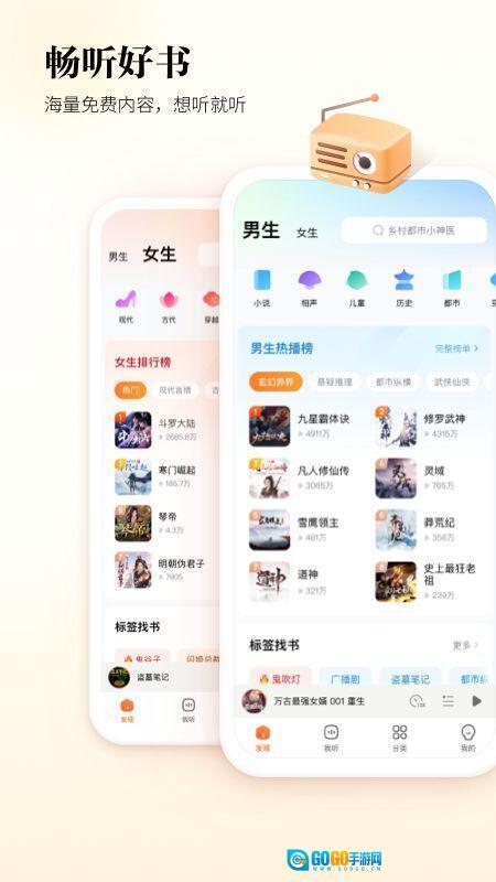 酷狗听书设有特殊区域分类,各类小说在此汇聚,供你随心挑选;男女专属的特殊区域,能满足不同听众的喜好。