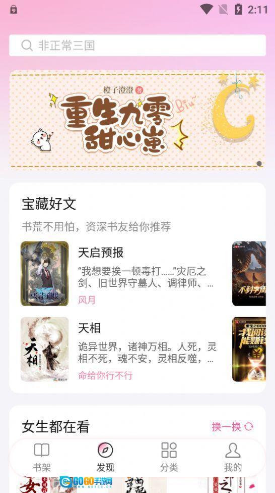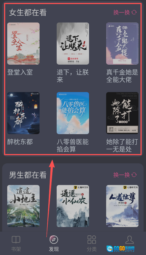 在新手阶段,你只需要熟悉底部四个主要导航按钮的基础功能就行:通过“发现”板块可以找到热门内容,借助“分类”选项能筛选不同类型的内容,利用“书架”功能来收藏喜欢的内容,进入“我的”页面则可以查看相关数据。