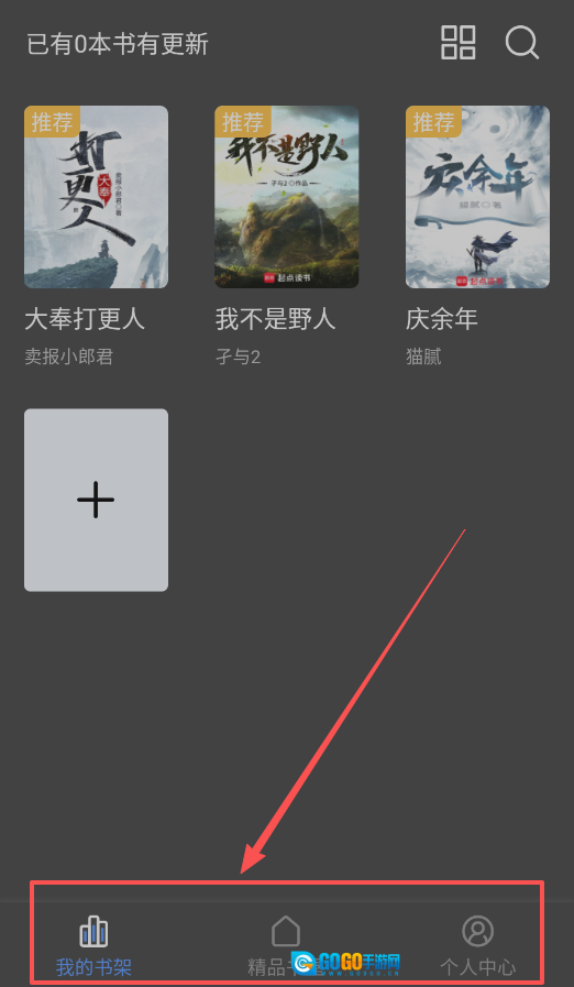 在我的书架里,你能管理自己收藏的书籍,还能查看它们的更新情况,推荐区会给你推荐像卖报小郎君、猫腻这类作者的热门作品。