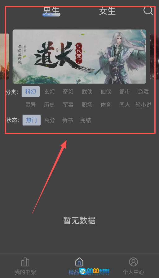 找书的时候,能借助分类功能,在玄幻、都市、灵异这类类别里慢慢选。也可以用状态筛选,直接定位到热门或者已经完结的作品。