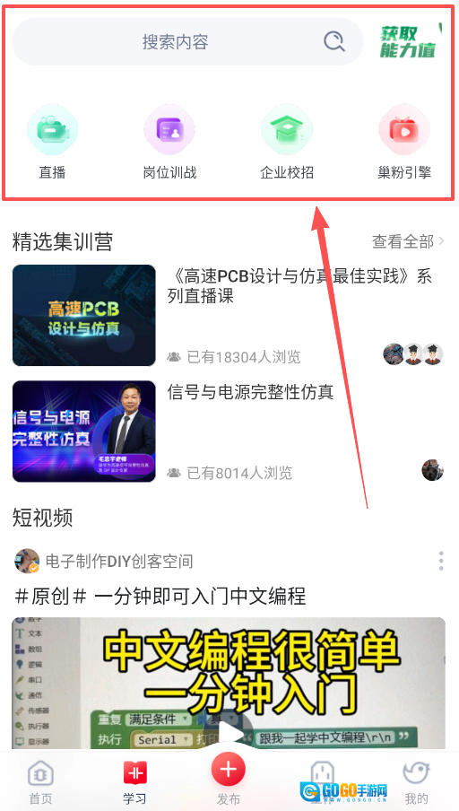 在这里,用户能找到各个板块,便捷地学习更多知识内容,还能获得体验支持。