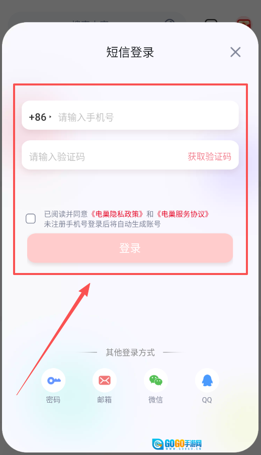 首先要完成账号的注册与登录,先输入手机号并填写验证码,登录之后还可以选择密码、邮箱或者微信等其他的登录方式。