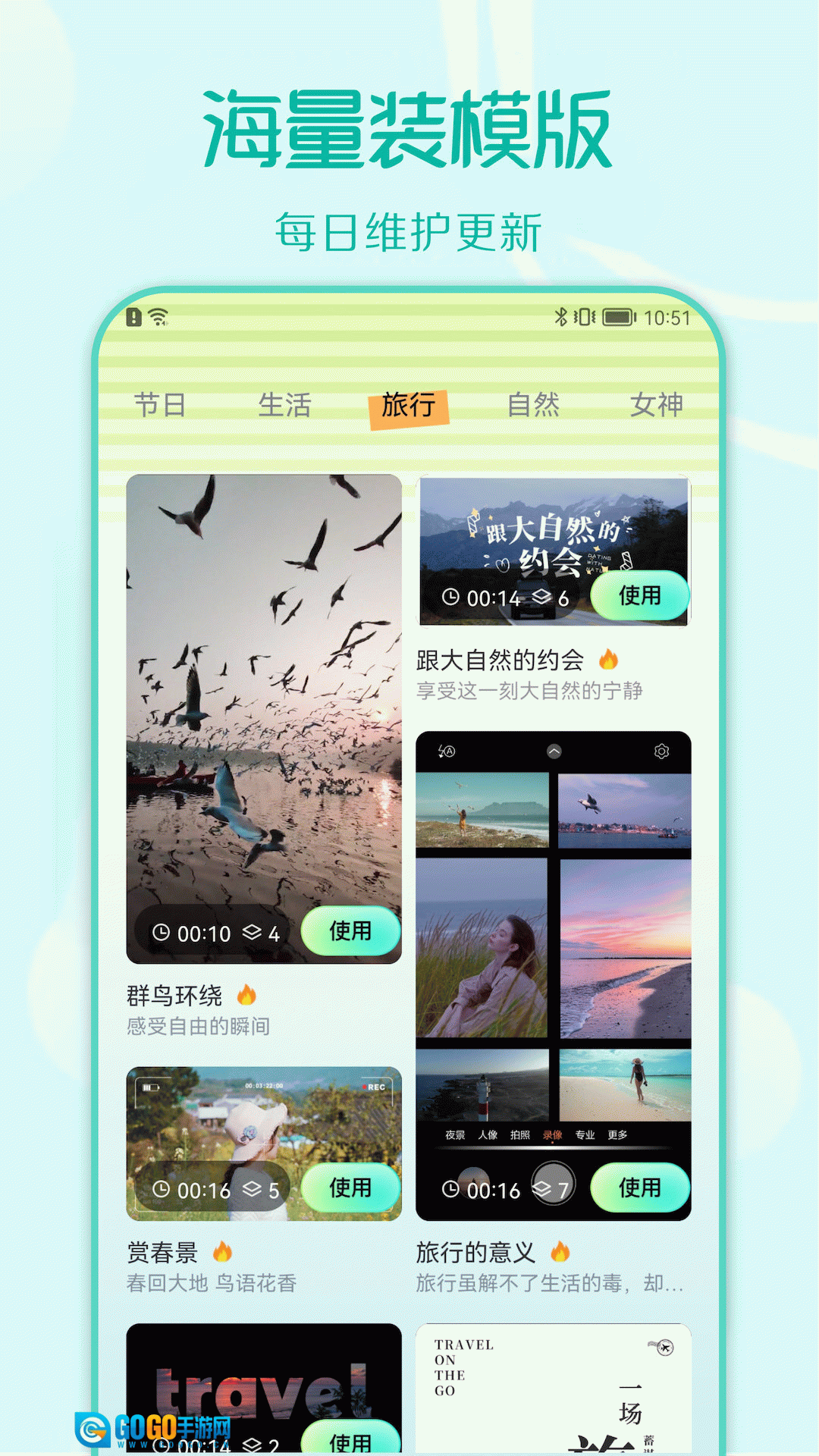 装U神器亲子、度假、生活、旅游、自然等近20种模板,数量十分丰富。