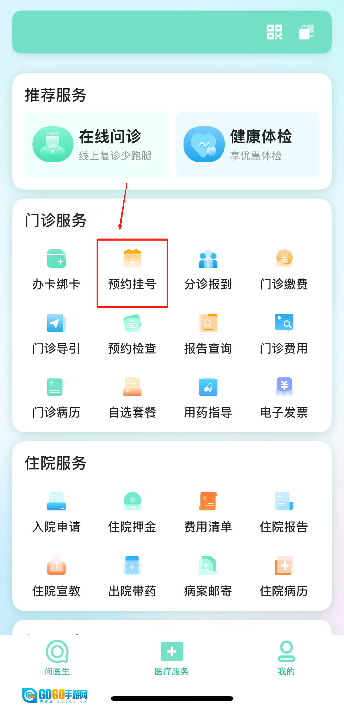 打开后先在预约挂号板块