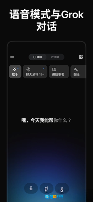 1.安装Grok App后,首次打开会有简单引导,帮助用户熟悉主要模块:聊天(Chat)、图片创作、语音互动和内容管理。界面简洁直观,左侧菜单清晰展示功能入口,用户无需花大量时间学习就能开始使用。