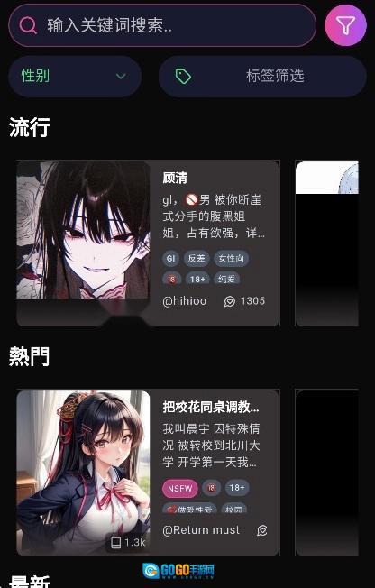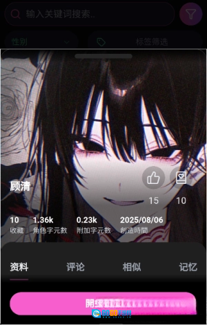 3.创作与探索并行除了自己创作角色,用户还能发现热门角色、查看热榜和关键词推荐,与其他创作者互动。创作与社交双重体验,让应用不只是工具,而是一个充满活力的虚拟社区。