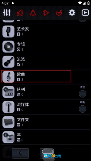 2、进入歌曲列表后选择歌曲选项。