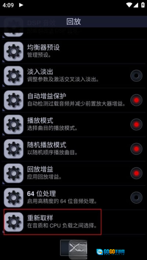 3、进入回放设置后,往下翻找到"重新取样"这一项。