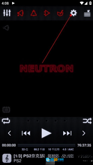 1、启动Neutron中子播放器,找到右上角那个小齿轮图标,点它进入设置。