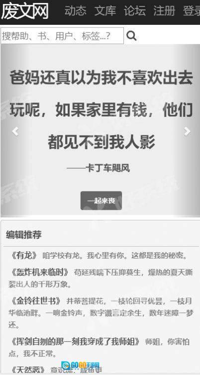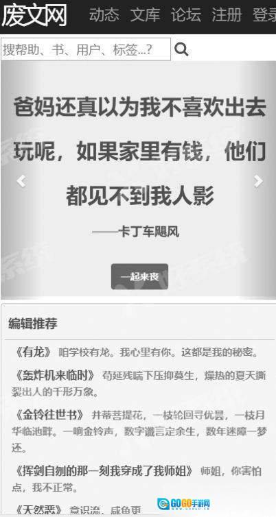 首先并进入废文网,进入之后点击网页顶端的“Register”选项,也就是注册功能;
