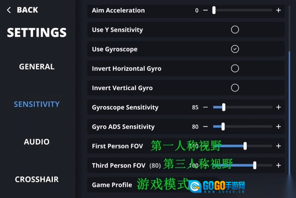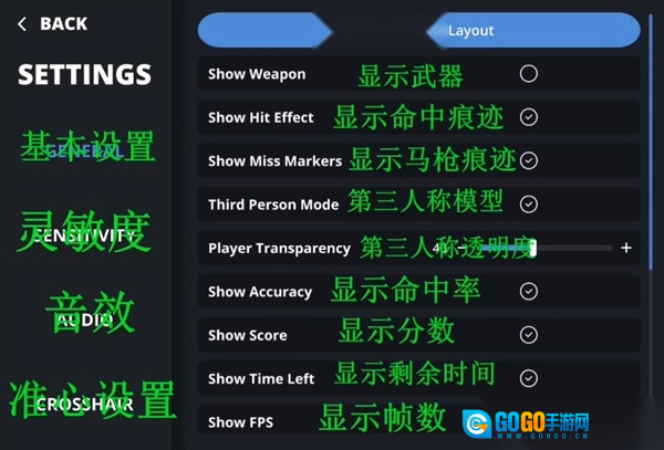 可调整游戏音效、画质、灵敏度、准星样式等。