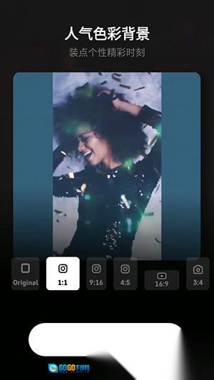 尺寸裁剪:将比例调整为任意尺寸,在 Instagram、IGTV、YouTube、Facebook、Twitter、抖音等分享您的创意。