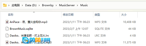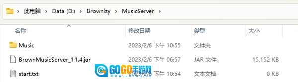 1. 服务端文件BrownMusicServer_1.1.4.jar,将它放在一个不含中文的路径下(如:D:BrownlzyMusicServer),如图所示: