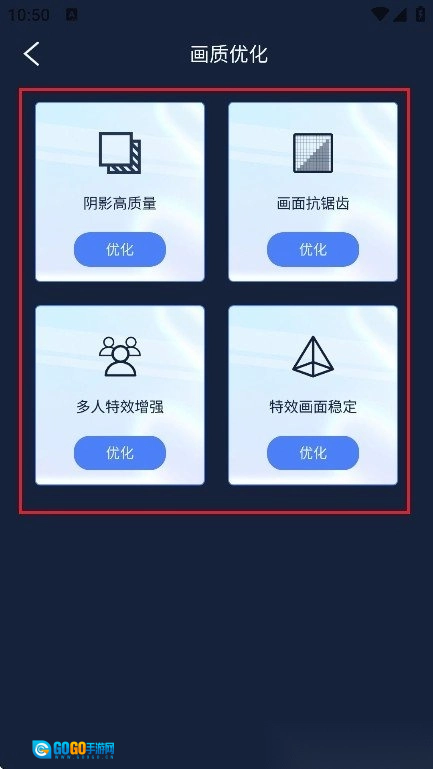 2. 支持一键优化游戏画面分辨率与帧率,智能化地识别每个游戏并对其进行专属优化。