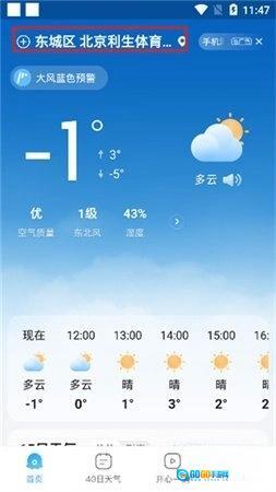 1、进入软件首页,点击当前显示的城市名。