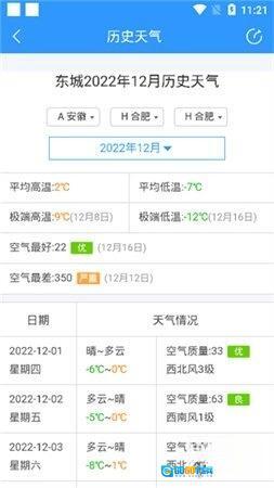 2、选择想要查询的年月,软件将显示该月的月均温度。若向下滚动,还可以查看该月每天的天气情况。