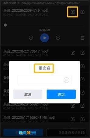 6、点击编辑按钮,可以对音频文件进行重命名操作。