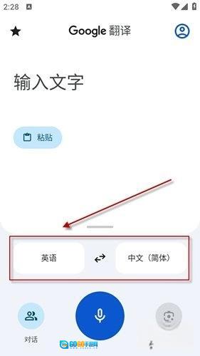 1、在本站内安装并打开软件,默认显示输入框,可选择源语言和目标语言。