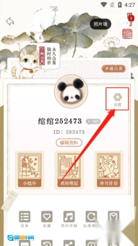 2、进入个人页面后,找到并点击页面中间位置的“设置”选项。