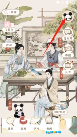 1、进入长相思诗词后,首先点击右上角的“头像”图标。