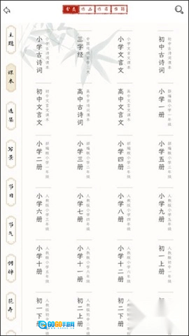 5、提供从小学到高中的古诗词课本内容。