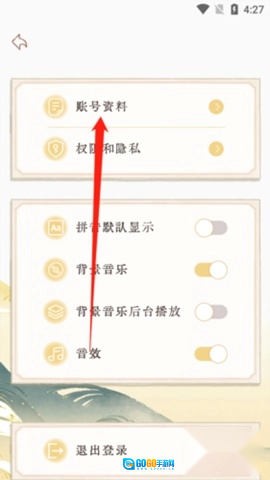 3、进入设置后,选择“账号资料”。