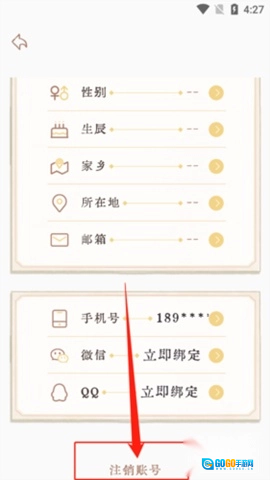 4、下拉页面至最底部,可以看到“注销账号”的选项,点击它。