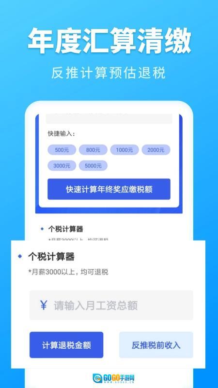 1、工资计算器,输入税前工资即可快速计算工资税后收入情况,税金一目了然,同时为个税查询、计算、提供优化方案。