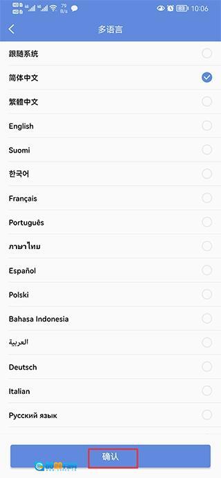 2、在语言选项列表里选定简体中文,随后点击“确认”按钮,即可成功完成设置。