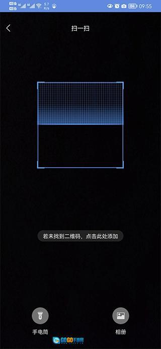 2、把手机摄像头对准摄像头上的二维码进行扫描以完成连接操作;若扫描二维码失败,也可进入手机相册,从中选取相应图片进行扫描。