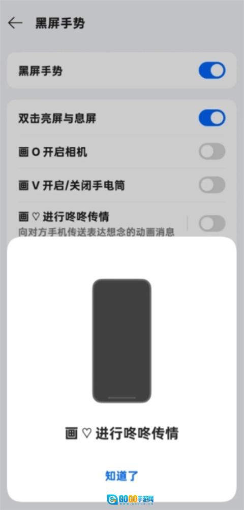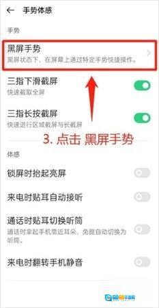 3、接着选择点击“黑屏手势”。