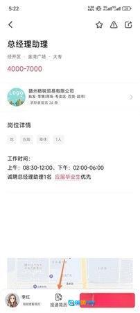 2、找到心仪的工作后,用户可以点击投递简历,也可以选择立即沟通。