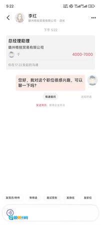在职位详情页点击“直聊”按钮,即可与企业负责人一对一沟通;可主动咨询岗位详情、薪资福利等问题,也可发送简历供对方查看,达成意向后可协商面试事宜。