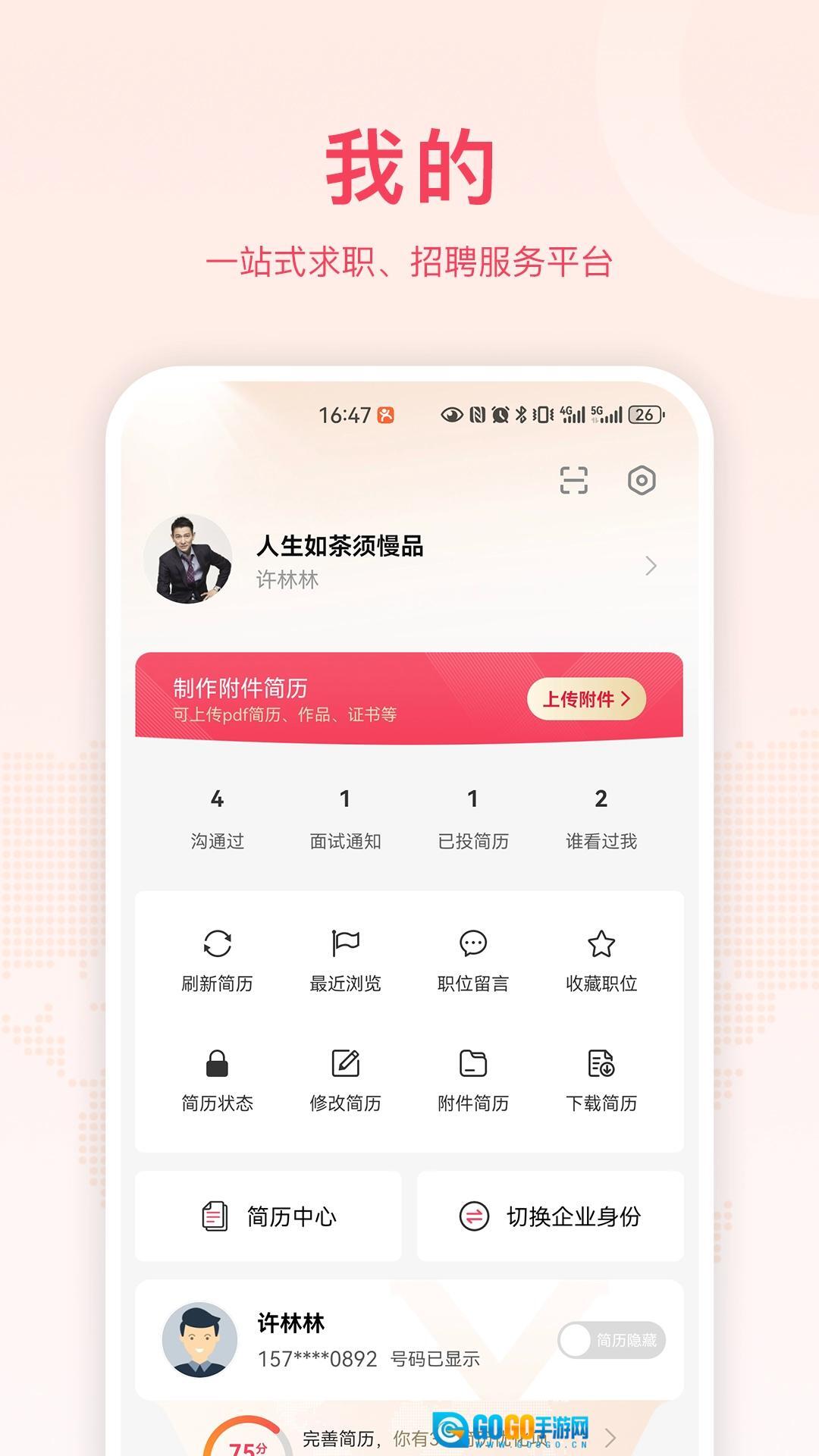 企业直聊模式让沟通更高效,内推通道为求职增添优势,搭配智能职位匹配与专业简历管理功能,全方位提升求职成功率,帮助求职者快速拿到心仪offer。