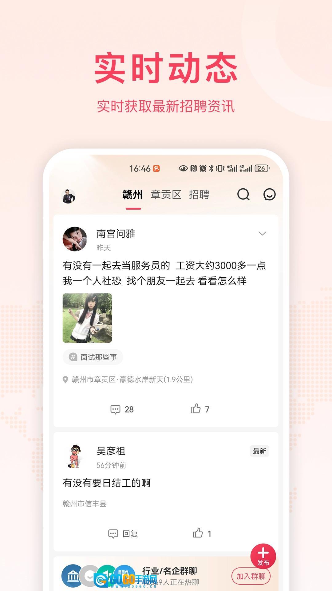 进入同城动态界面,浏览同城伙伴的求职心得与分享;可针对感兴趣的内容留言互动,也可发布自己的求职疑问或经验,加入求职圈子与大家互助交流,提升求职效率。