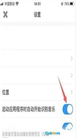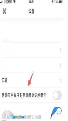 3、在设置中找到“启动应用程序时自动开始识别音乐”的选项。