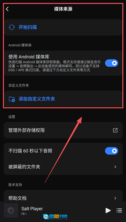 建议优先采用“Android媒体库”执行全盘扫描,要是存在部分文件夹内的音乐未被纳入,再借助“自定义文件夹”功能来做精准的补充收录。