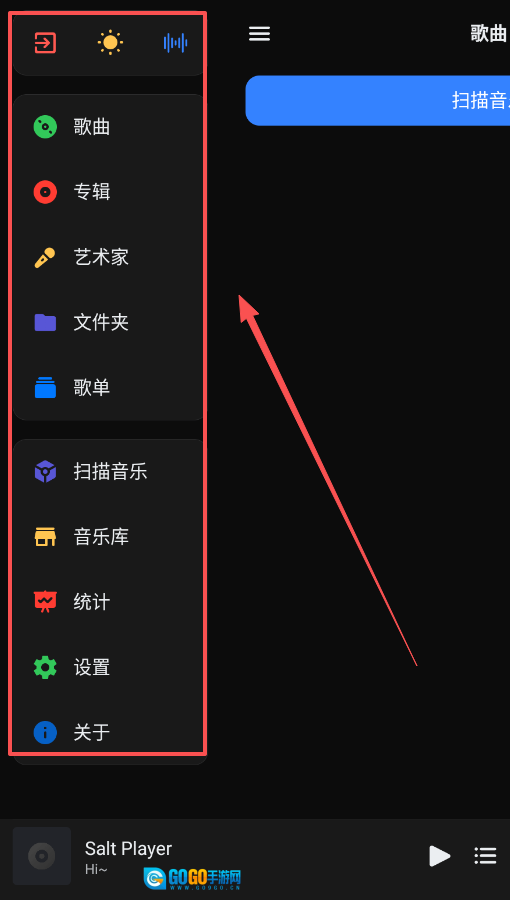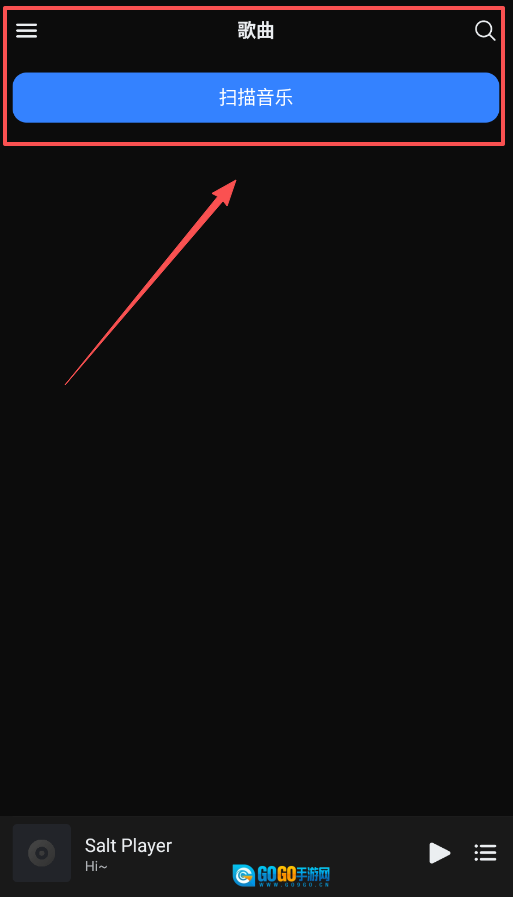 打开后,首要任务是点击底部导航栏的“扫描音乐”,授予必要权限后,就可以准备导入你的歌曲了。