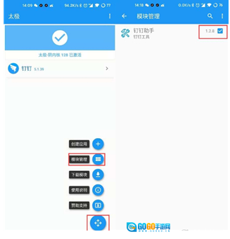 然后选择模块管理,将钉钉助手勾选上;