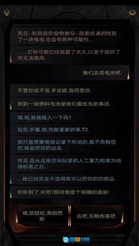 可以自由挑选一些对话选项,像“怀疑”“或许存在危险”之类的。