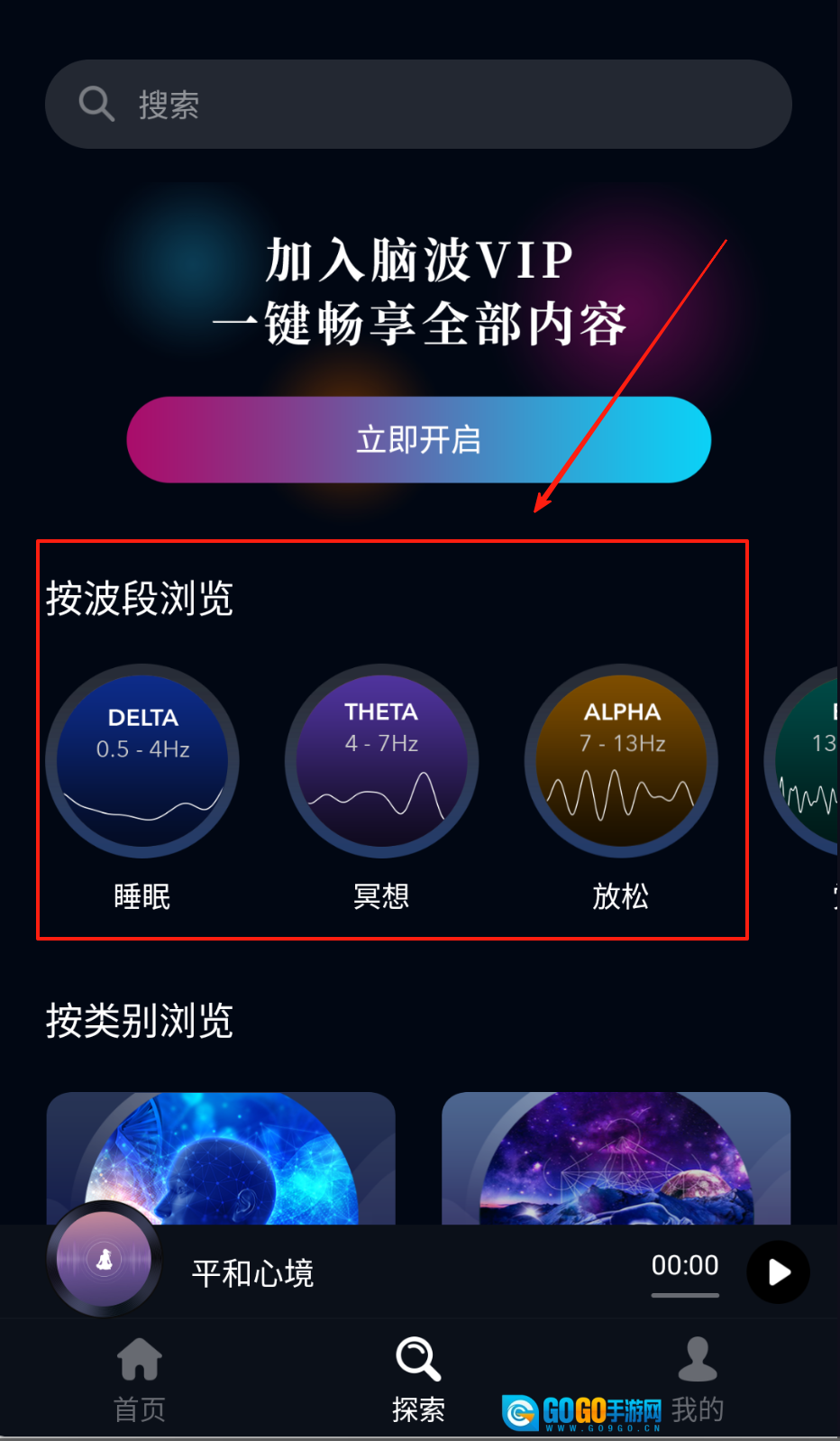 进入曲库后,按照Beta、Alpha、Theta波段的顺序挑选音频,购买之前可以试听免费的片段。