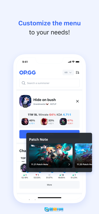 《OPGG手机客户端》是专为手机用户打造的版本,所有按键操作都完美适配手机,使用体验十分出色。作为一款优质的游戏资讯服务软件,它让用户能按照自己喜欢的方式进行操作选择,为玩家提供了更及时的查询服务渠道。用户可以随时关注自己喜爱的选手及明星召唤师的战绩数据,深入了解相关服务,以便更好地查询所需信息。