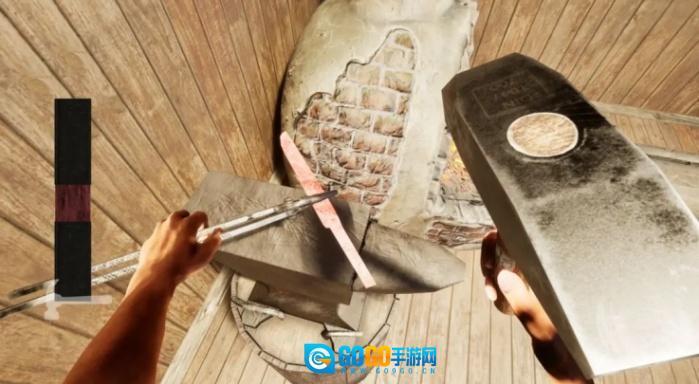 别具一格的铸剑系统:玩家得敲碎矿石来收集制作材料,把坩埚加热使金属熔化成液态,再把铁水倒进模具中,接着通过捶打来塑造剑的形状,最后完成开刃工序。