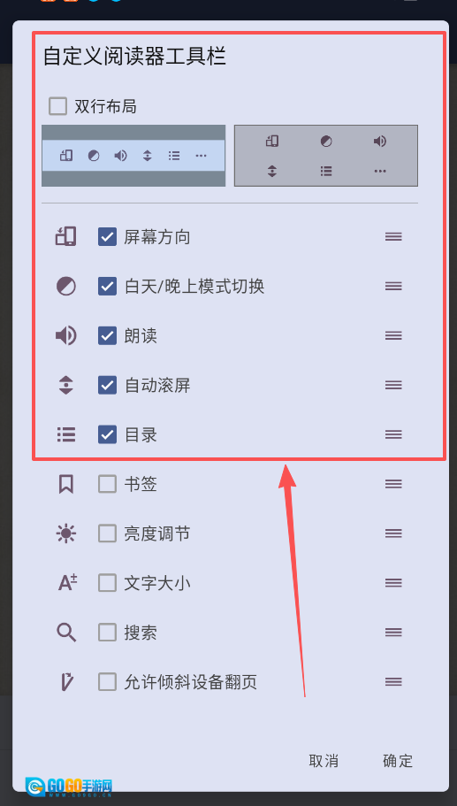 要是想让阅读体验更舒适,不妨去自定义工具栏,把日夜模式切换、字体大小调整和亮度调节这些功能放在顺手的位置,这样就能根据不同的光线条件随时进行设置了。