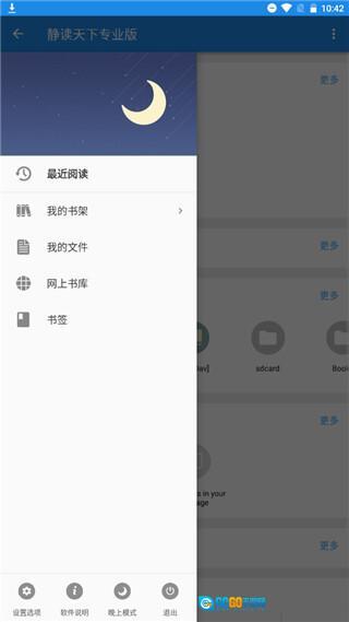 软件底部的菜单十分实用,你能随时查看最近阅读的书籍、管理书签,也可以切换到护眼的夜间模式,所有常用功能都能在这个菜单里找到。